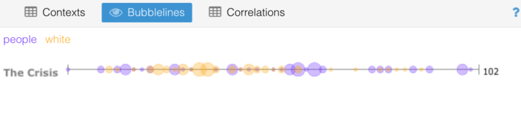 This particular tool allows for the relative connection and comparison between the content included in The Crisis to be analyzed, as specified by which columns of data are selected to create a visualization.