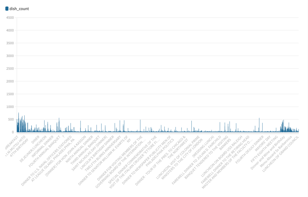 In the class, we analyze the examples of menus and dishes names that being used over time. We cleaned the data of the dishes’ names and run it through Flourish to examine the trending and analyze the data.